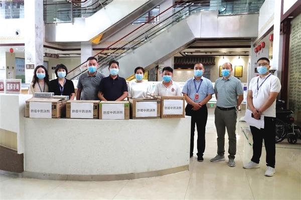为了贯彻上级部门对疫情防控的要求,积极发扬中医药优势,提升中医药救治能力。郸城县第二医疗健康服务集团县中医院积极应对,根据这次德尔塔毒株的发病机理、郸城气候地域特点以及不同体质等情况,追溯去年和今年上半年推出的预防方剂的效果,结合多年的临床经验,开出了新的中药预防方剂。图为院长水新华带领班子人员一行,分别到辖区卫生院发放中药汤剂,助力抗击疫情。