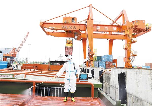 据了解,目前周口全市各港口积极贯彻落实省委、市委决策部署,在扎紧扎牢疫情防控四个“口袋”的同时,严格港口管理,坚决阻断水上疫情传播,要求所有船员不上岸,所有货物上岸要进行消杀,到港船员要进行核酸检测,所有船只必须配备防疫物资,切实扎紧扎牢疫情防控第五个“口袋”,确保防控工作落实到位。