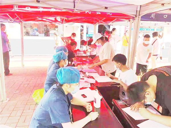 连日来,川汇区各办事处严格落实疫情防控政策,积极推进新冠疫苗接种工作,安排工作人员到接种点维持现场秩序,组织接种人员戴好口罩、绿码进入、一米间隔排队,确保新冠疫苗接种工作安全、有序、平稳进行。