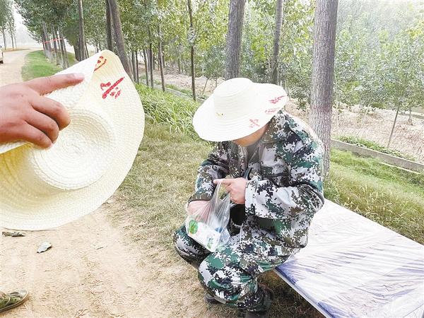 图二:连续多日参加高强度排涝工作,王艳军血压升高,他坐在大堤上拿出了降压药。