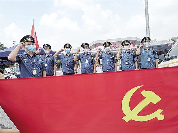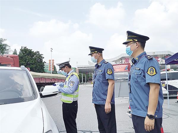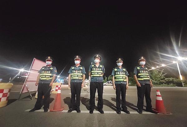 执勤中,交通执法人员战酷暑、顶烈日,风雨无阻,坚持24小时值守,测量体温,查验健康码、行程码、核酸检测报告,开展防疫宣传,耐心说服教育、劝返来自中高风险地区的人员和车辆。同样的工作重复做,繁琐的流程细心做,执勤人员克服白天高温炎热、夜间蚊虫叮咬等不利因素,做到疫情防控卡点不空岗、不缺位,始终坚守在疫情防控第一线。执法支队班子成员分包卡点、靠前指挥,严格要求、认真督导,发现问题,立即整改。广大党员争上一线,组建“党员先锋队”、重温入党誓词,发挥模范带头作用。截至目前,共检查车辆8万多台次,排查司乘人员10万多人次,劝返车辆9千多台次,为全市新冠肺炎疫情防控贡献交通执法力量。