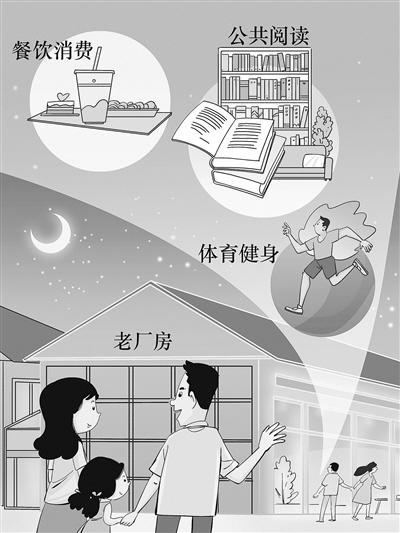 安徽省合肥市瑶海区长江180艺术街区原是一片工业厂房。当地在旧厂房改造升级过程中,保留工业文化特色,注入创意设计元素,打造集艺术设计、公共阅读、体育健身、餐饮消费等功能于一体的文创艺术街区,并增设“夜经济”主题游览休闲项目,为市民休闲增添了好去处。这正是: