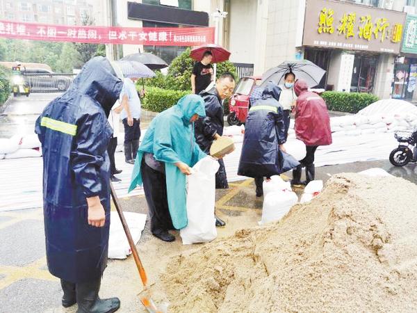 8月22日下午,在暴雨来临之前,周口市生态环境局西华分局15名党员突击队员对小区低洼处进行封堵,为群众筑起一道防汛安全线。