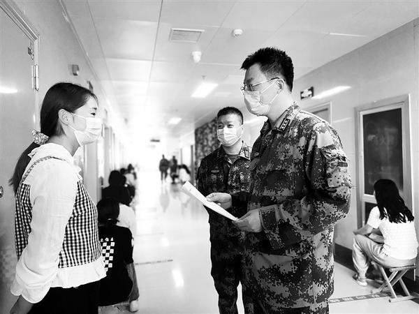 8月25日,周口市2021年下半年女兵征集体检工作在项城市中医院进行。参加体检的应征女青年在工作人员的带领下,依次进行体格检查。征兵体检工作全程采取封闭式管理,严格落实疫情防控要求,坚决防止在征兵组织实施中引发疫情传播扩散和将新冠病毒感染者征入部队。