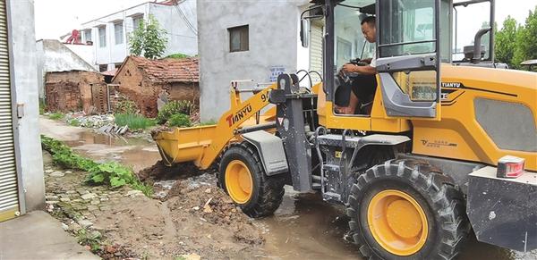 汛情过后,西华县大王庄乡出动机械,及时清理路面淤泥,疏通内涝道路。