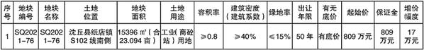 SQ2021-76号地块: 2021年9月22日10时;拍卖网址:周口公共资源交易系统(网址:http://jyzx.zhoukou.gov.cn)。