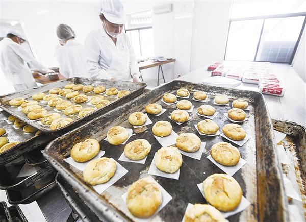 8月27日,在塘栖镇的老刀食品工厂里,工人们在包装烤制好的土灶月饼。