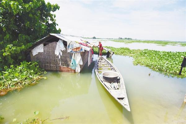 8月28日,在印度阿萨姆邦一个洪水泛滥的村庄,一名女子在被部分淹没的房屋屋顶放置衣服。印度每年6月至9月是季风雨季,洪水、泥石流等灾害经常发生。新华社发