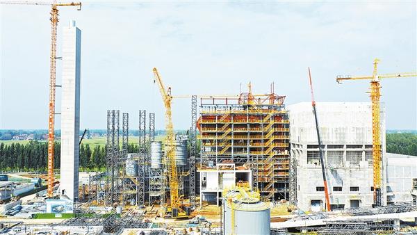 “我们从早上6点半到晚上6点半,不管多么热的天气或者刮风下雨都不停。希望我们的汗水能换来郸城的良好环境。”项目施工人员说。记者在项目建设现场看到,主厂房结构、80米高的烟囱等基建主体工程已经基本完工,来自江苏、安徽、山东等地的施工人员正不辞辛苦,奋力工作在各自的岗位上。来自河南安阳的50岁的秦海军是一名普工,在这里每月能拿到8000元的工资。他告诉记者已经4个多月没回家了,每天都奋战在施工一线,说完抹一把额头上的汗,继续工作。记者看到,高39米的垃圾进料仓已经标线清楚,存储容量能达到1万吨,相当于整个县城10多天的生活垃圾产生量;日焚烧800吨级别的焚烧炉即将安装完成,投产后垃圾从进料仓转到焚烧炉,经过焚烧即可产生蒸汽;高温高压蒸汽推动汽轮发电机组发出电能,输送到国家电网系统。在这个过程中,存储垃圾产生的渗滤液由厂内配套的污水处理站进行深化处理,二次发酵而产生的沼气被回收作为助燃材料,处理过的废水全部在厂内二次利用、废渣投入焚烧炉一并焚烧。焚烧废气经过烟气净化系统处理达到欧盟标准后通过80米高的烟囱排入大气,整个生产过程实现了生活垃圾处理“无害化、减量化、资源化”的三化目标。