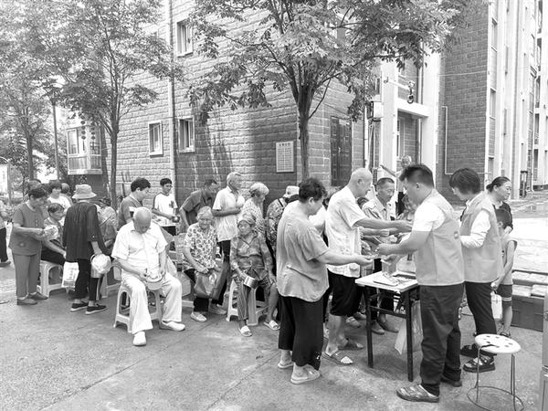 9月7日中午,建业社区居住的老年人在社区助餐服务点领取午餐。为了解决社区老人“吃饭难”问题,提升居家老人的幸福感,周口市城乡一体化示范区自7月份开始为社区老人提供助餐服务,让老年人不出社区就能吃上热乎可口又营养的午餐。