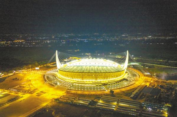 中国援柬体育场是迄今对外援助规模最大、等级最高的体育场。体育场整体呈帆船造型,设计吸收了古代吴哥窟建筑工艺精髓,同时使用中方自主研发的一流工艺技术,实现了绚丽多姿的高棉文化同中国“大国工匠”精神交相辉映的完美融合。新华社发