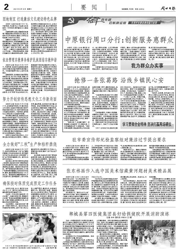 本报讯(记者 徐松)汛期过后,道路抢修忙。9月13日,记者在郸城县与淮阳区重要连接通道张葛路(郸城张完乡至淮阳葛店乡)抢修现场看到,经过夜以继日地前期抢修施工,目前正式进入铺油工序。待今年年底全线贯通后,郸城县张完乡、汲水乡、虎岗乡、吴台镇、李楼乡和淮阳区葛店乡的数十万居民将出行无忧,解除沿线数万亩农作物收割运输难题。