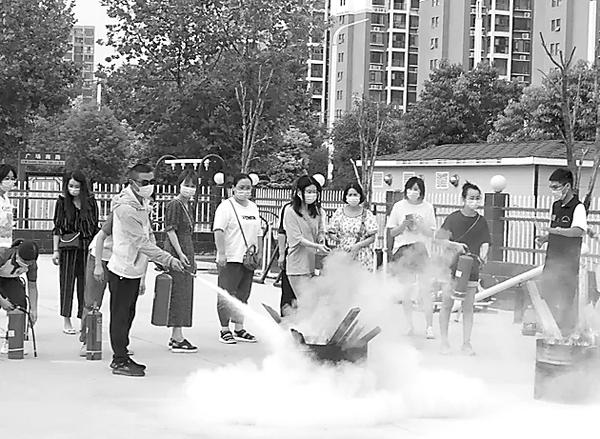 在逃生、灭火模拟演练开始前,由消防专业人员现场详细讲解消防灭火器的使用方法及消防安全“四个能力”,能够有效应对突发初期火灾及时扑灭,防止重大火灾发生。