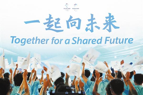 在全球应对新冠肺炎疫情的大背景下,北京冬奥会主题口号发出的声音是汇聚、是共享、是未来。“一起(Together)”展现了人类在面对困境时的坚强姿态,指明了战胜困难、开创未来的成功之道。“向未来(for a Shared Future)”表达了人类对美好明天的憧憬,传递了信心和希望;“一起向未来(Together for a Shared Future)”是态度、是倡议、更是行动方案,倡导追求团结、和平、进步、包容的共同目标。