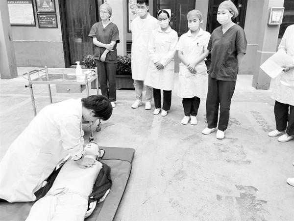 本报讯 (记者 孙艳 文/图) 为提高医护人员的急救知识和心肺复苏技能水平,保障医疗安全,提高医疗服务质量,近日,川汇区中医院对医院发热门诊、急诊科、预检分诊等科室的医护人员开展心肺复苏术操作考核(如图)。