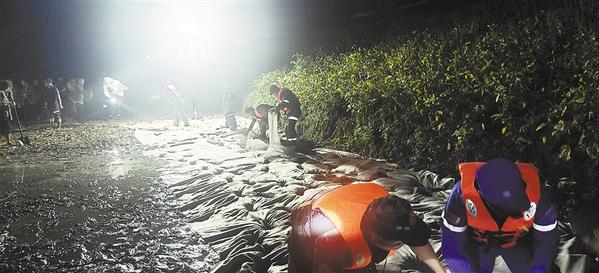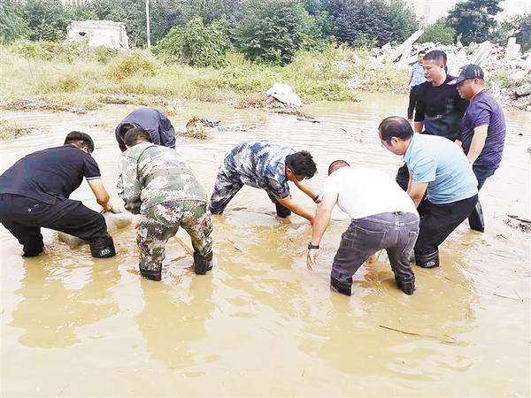 9月27日11时,淮阳区防汛抗旱指挥部紧急通报,沙颍河新站镇田埠口段出现4处管涌、3处渗水,河水一度漫过河堤,严重威胁到附近居民的生命和财产安全。新站镇党员干部、附近村民在区防汛抗旱指挥部的统一指挥下,密切协作,对险情迅速处置,搬运沙袋、疏通排污口、封堵缺口、架警示牌,全力开展抢险工作。