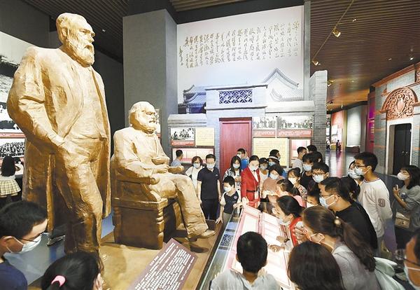 当日,不少游客来到中国共产党历史展览馆参观,在国庆节接受党史教育。新华社记者 李贺 摄