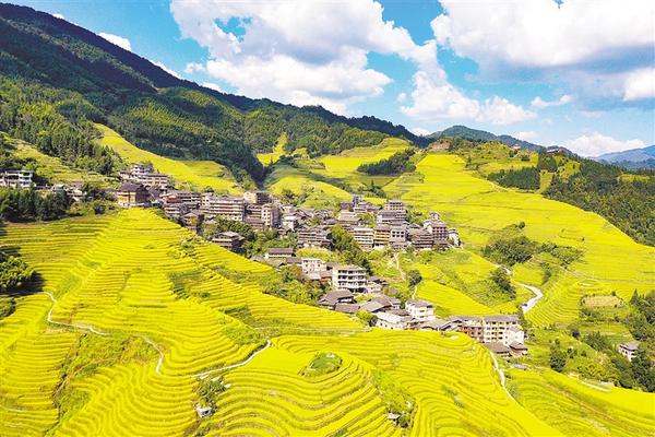 这是10月1日拍摄的广西桂林市龙胜各族自治县龙脊梯田秋日景观(无人机照片)。