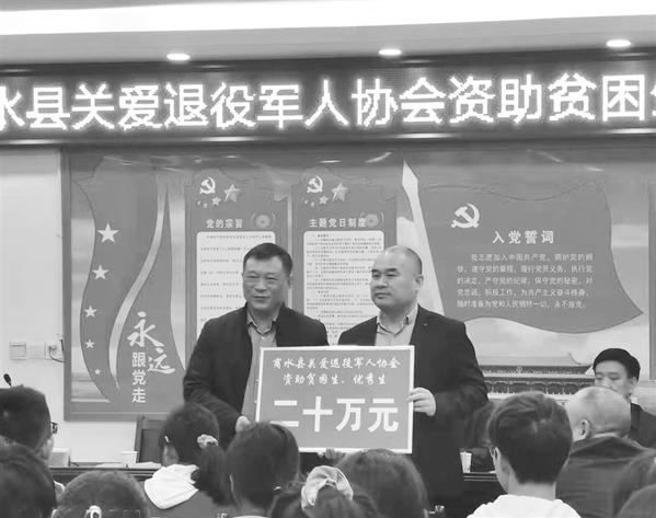 商水县关爱退役军人协会成立以来,紧紧围绕退役军人就业创业、困难退役军人帮扶、弱势群体救助等开展工作,先后募集资金300多万元,帮助困难退役军人280人次。图为10月8日上午,商水县关爱退役军人协会资助商水一高贫困生优秀生捐赠仪式。