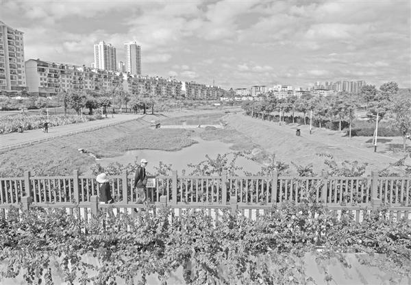 金秋时节,广西南宁市沙江河湿地公园草木葱茏、水碧花红,宛如一幅美丽画卷。新华社记者 周华 摄