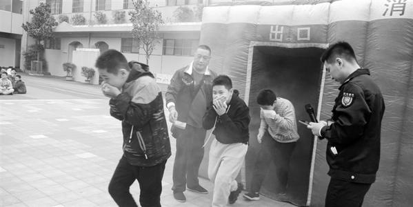 近日,周口市纺织路小学邀请某消防服务中心宣传员为全校教师作题为《关注消防,生命至上》的讲座,并开展了消防演练。图为学生在教官指导下体验逃生帐篷。记者 朱鸿 摄