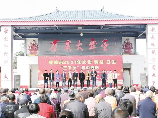 10月12日,2021年度项城市文化、科技、卫生“三下乡”活动在孙店镇崔马庄举行。此次活动由项城市委宣传部主办,市科技局、市文化和旅游局、市卫健委、市教育体育局、市农业农村局、市司法局等13家单位协办。 记者 杨光林 摄