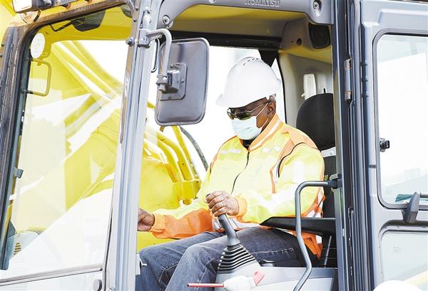 10月21日,博茨瓦纳总统马西西在拉莫茨瓦举行的洛巴策供水管线项目开工仪式上操作挖掘机。