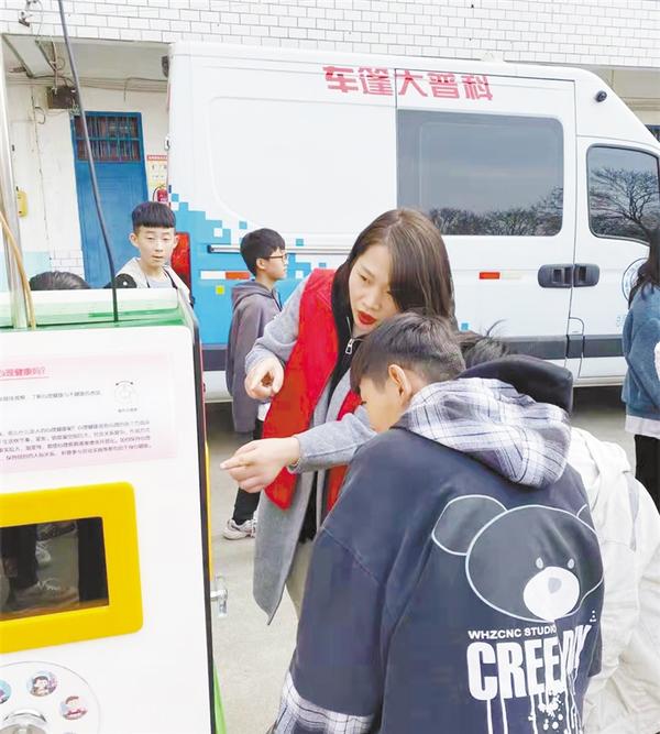 普及科学知识,弘扬科学精神。10月21日,扶沟县科协“i科普”志愿服务队带着科普大篷车走进韭园镇初级中学,将科普展品整齐摆放在操场上,以展示、体验、互动等形式,为孩子们送去了丰盛的“科技大餐”。图为志愿者向孩子们讲解科普知识。
