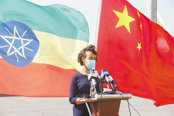 10月24日,在埃塞俄比亚首都亚的斯亚贝巴,埃塞俄比亚卫生部长利娅·塔德塞在中国援助埃塞疫苗交接仪式上发表讲话。