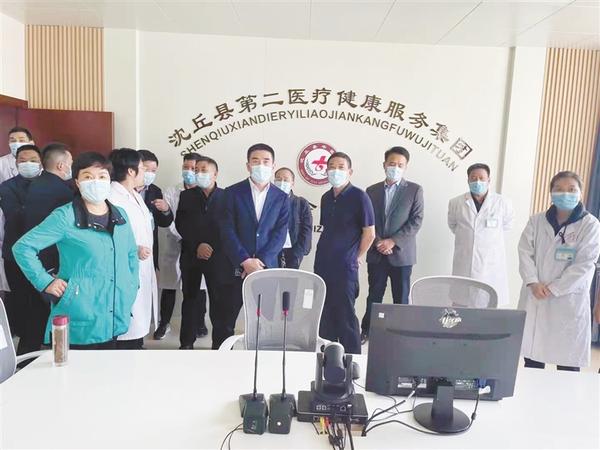 本报讯 (记者 韦伟 文/图) 10月12日,沈丘县长余长坤调研医共体建设和健康扶贫工作情况(如图)。县委常委、县委办公室主任吕孝坤,县人大常委会副主任张治君,副县长张艳秋及县直有关单位负责人参加调研。