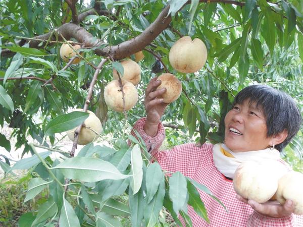 10月19日,在沈丘县洪山镇王油坊村一处冬桃基地,新鲜脆甜的冬桃挂满枝头,果农忙着采摘、包装、分拣订单冬桃,一派繁忙的景象。