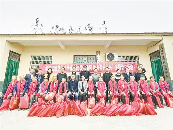 秋来又重阳,情系桑榆晚。10月14日,淮阳区烟草局组织党员干部前往帮扶村大连乡齐庄行政村开展“情暖金秋 爱在重阳 助力乡村振兴”敬老慰问主题党日活动(如图),以别开生面的方式共度中国传统节日。当天上午9时,该局副经理杨慧灵首先代表烟草局及驻村帮扶工作队向老人们致以节日的问候和美好的祝愿,为老人们送去了围巾、手套、暖水袋等过冬御寒用品及节日的祝福,并叮嘱老人们一定要注意身体健康。随后,帮扶责任人纷纷走进困难孤寡老人户家中,详细了解老人的日常生活起居,仔细倾听他们的诉求和意见建议,陪老人们拉拉家常、打扫家庭卫生,让困难孤寡老人们感受到家人的温暖。帮扶责任人在弘扬践行敬老爱老传统美德的同时,也把新时期精准帮扶的温暖与关怀送进这些特殊群体。“重阳看老乡,老乡泪汪汪;贫困不复在,烟草局帮咱奔小康!”一位脱贫户道出了大家的心声。