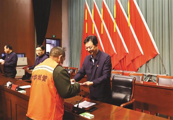 会上,县委常委、办公室主任段晓宣读了《关于表彰2021年度城市管理和环卫工作先进单位及先进个人的决定》;与会领导为受表彰的先进单位和先进个人代表颁发荣誉证书。