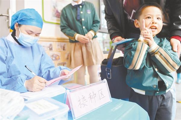 11月4日,在湖南省永州市零陵区安琪正央幼儿园,小朋友准备接种新冠疫苗。近日,湖南省永州市全面启动3到11岁人群新冠疫苗接种工作。