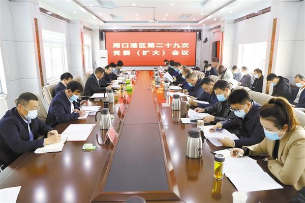 本报讯 (记者 宋风 通讯员 赵磊 李锐龙 文/图) 11月4日,周口港区党委书记孙鹏主持召开周口港区第二十九次党委(扩大)会议,集中学习省第十一次党代会、省委十一届一次全会和全市领导干部大会精神(如图)。周口港区领导程若光、杜广贤、李翔、刘学庆、李素芹,周口市公安局港区分局局长康群泉,周口港区二级调研员张东立出席会议,周口港区区直各部门负责同志参加会议。