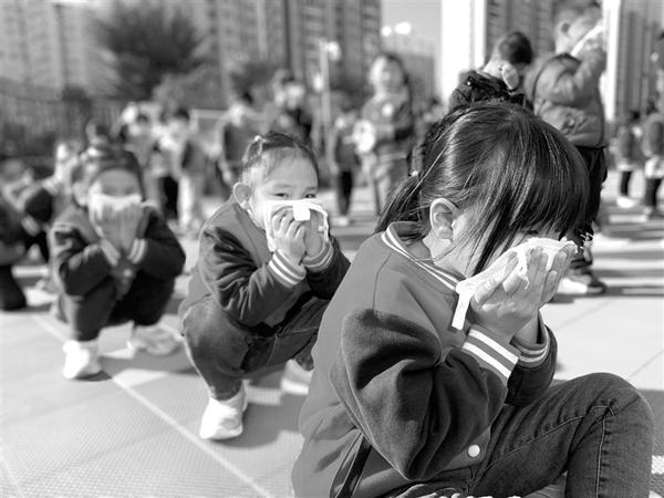 为帮助幼儿树立安全意识、掌握安全知识,提高幼儿的自我保护和自救能力,确保幼儿园教育教学工作有序开展,近日,周口经济开发区开元路幼儿园开展以“安全驻心间 健康伴成长”为主题的安全宣传月系列活动。图为消防演练现场。