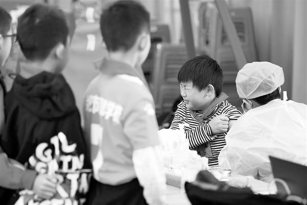 11月12日,医务人员在合肥市翡翠学校为小朋友接种疫苗。