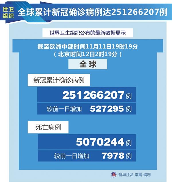 世卫组织全球累计新冠确诊病例达251266207例