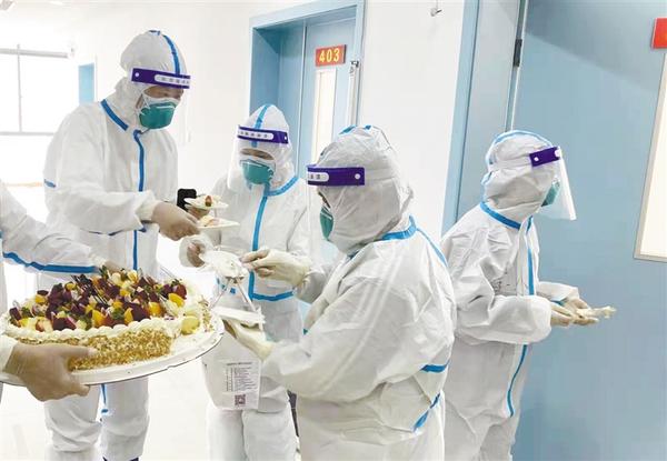 24小时驻守隔离点的一线防控人员肖俭激动得热泪盈眶:“这是一个特别的生日,县里为她准备了生日蛋糕,由住在隔离点陪护同学们的‘大白’唱着生日歌为她送进去,而且同学们一起分享了这份甜蜜。”
