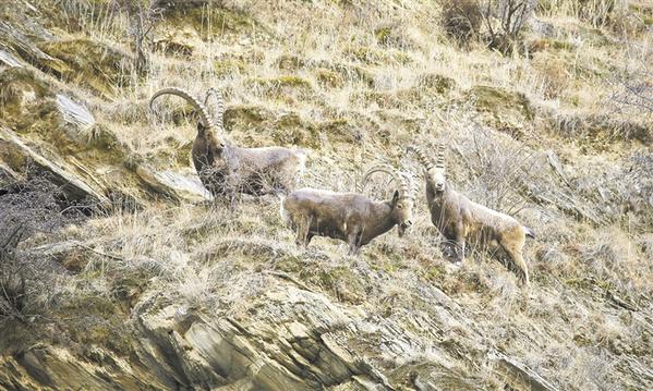 北山羊为国家二级保护动物,善于攀登和跳跃,栖息于海拔3500到6000米的高原和山腰地带。新华社发 (刘灵波 摄)