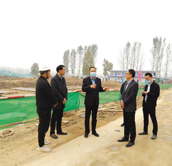 河南海熙生物科技有限公司项目厂房已全部建成,建筑工人们正在厂房内进行内部装饰装修、设备安装等工作。王文峰指出,要加快设备安装调试和园区环境打造工作,确保项目早日投产达效。