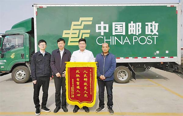 “感谢邮政的同志们,用最快的速度将邮件送到了我们的施工现场,保障了沈丘安钢项目的正常运转!”11月3日,博能传动(开封)有限公司田振兴经理驱车4个小时从开封赶到周口市分公司邮件处理中心,将一面印有“人民邮政为人民 风驰电掣暖人心”的锦旗,交到周口市分公司运营管理部经理张四领手中,一直不停地说着感谢,“工地现场多停工一分钟,对我们的损失都是极大的,感谢你们,整整为我们多争取了12个小时的时间。”