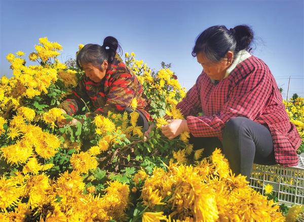 11月11日,西华县黄桥乡顺河村群众正在采摘菊花。近年来,该乡大力发展菊花种植加工产业,形成了以茶菊、观赏菊、药菊为主的菊花种植加工新产业。 记者 张猛 张志新 通讯员 段艳歌 摄