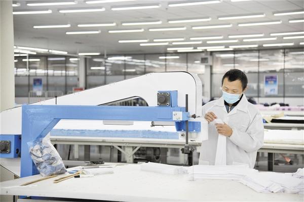位于县经开区的盛泰浩邦纺织工业园区项目建设立足高起点、高标准,集纺织、印染、制衣、电商等于一体,拥有先进的智能服装吊挂线、针织大圆机、多功能直裁刀床等设备,是河南省技术最先进的大型服装生产基地之一。图为技术人员操作多功能直裁刀床。