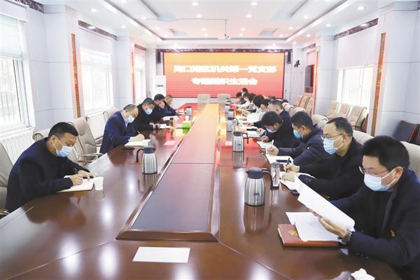 本报讯 (记者 宋风 文/图) 11月20日,周口港区机关第一党支部召开专题组织生活会(如图)。港区党委书记孙鹏,港区党委委员、港区管委会副主任刘学庆以普通党员的身份参会,围绕学习省第十一次党代会精神这一主题,盘点学习收获、检视剖析问题,深入开展批评与自我批评,并提出今后的努力方向和整改措施。
