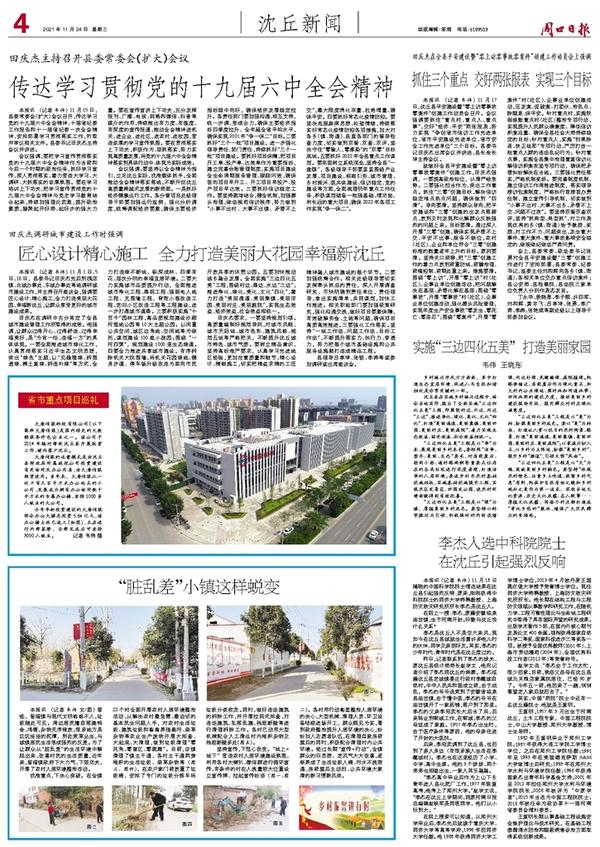 本报讯 (记者 韦伟) 11月18日揭晓的中国科学院院士增选结果在沈丘县引起强烈反响:原来,刚刚获得中科院院士的同济大学特聘教授、上海防灾救灾研究所所长李杰是沈丘人。