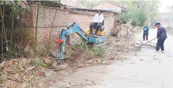 找准重点,下决心突破。在全镇22个村全面开展农村人居环境整治活动,从解决农村最急需、最迫切的基本民生问题入手,对农村生活垃圾、建筑垃圾和畜禽养殖粪污、柴草杂物等农业生产废物开展大排查、大起底、大清理,做到垃圾清理“零死角、零盲区、零疏漏”。目前,该镇清理了镇主干道、各村主干道两旁堆积的生活垃圾、柴草杂物等(图三、图四),在农户家门前放置了垃圾桶,安排了专门的垃圾分拣车将垃圾分类收走。同时,做好违法建筑的拆除工作,并开展拉网式排查,对违法建筑、私搭乱建、残垣断壁等进行清理拆除工作。各村已动用大型机械配合人工清运村内堆积杂物及残垣断壁多处(图五)。