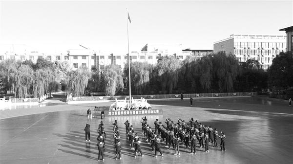 昨日,周口新星学校举行美丽大课间比赛活动。小学部、初中部的同学们身着整洁干净的校服,喊着整齐嘹亮的口号,展示出一个个团结、健康、向上的班级团队。该校每年都举行美丽大课间比赛活动,不仅考察同学们对课间操的掌握、熟练、规范程度,提高学生的身体素质,丰富课余文化生活,还增强了班集体的凝聚力,更展示了该校奋发向上的精神风貌。记者 陈军强 摄
