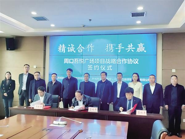 11月20日,新城控股与安源地产在市城乡一体化示范区管委会签署战略合作协议,吾悦广场落地山水周口项目,这标志着市城乡一体化示范区在完善区域配套、提高群众生活品质方面又迈出了坚实一步,也是示范区招商引资工作结出的又一硕果。