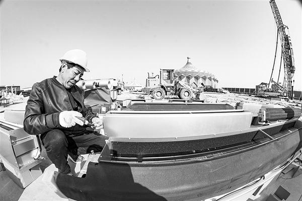 11月26日,记者在位于周口野生动物世界的2022年中国杂技春晚剧场建设现场看到,经过近三个月的施工,剧场空中舞台建设进入最后的设备安装阶段,二楼的看台及走廊、一楼地平铺装、一楼看台安装都在紧张施工中,百余名工人昼夜施工,赶工期、保质量,以最快的速度力争明年元月15日将剧场整体建成,交付使用。